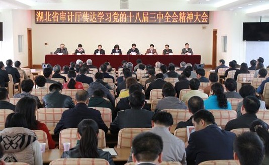 11月15日上午,湖北省审计厅召开党员干部大会,传达学习十八届三中全会精神。厅党组成员、副厅长杨保平主持会议并传达学习《党的十八届三中全会精神传达提纲》。全厅党员干部和离退休副处级以上干部参加会议。