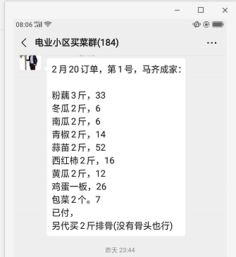 发挥居民自治,变工作对象为工作力量。先锋队在调研中发现,供电小区1/3为老人,小区没有业主群,居民吃菜成了问题。一次偶然机会,一名叫周利军的大姐因询问如何网上买药找到了党员先锋队,通过先锋队动员,周利军成为了一名巾帼志愿者。党员先锋队队员教周大姐建立了小区微信群,目前为止已加入居民184名,每天在群内接龙团购蔬菜,大大缓解了小区居民吃菜难问题。把群众组织起来,引导他们自我服务,打造一支不流动的志愿服务队,战时互助,平时自治,成为社区抗疫工作的好帮手。