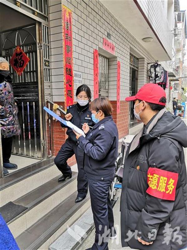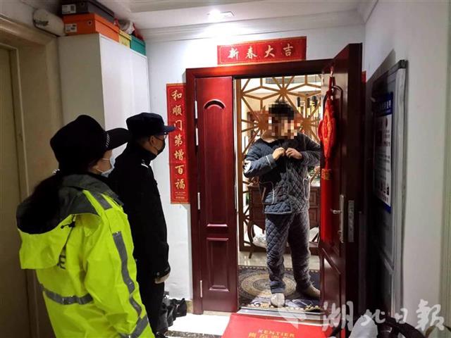 2月22日13时许,武汉市公安局江岸区分局劳动街派出所湖边坊社区民警但建伟同社区工作人员,又一次来到辖区疑似患者焦女士家门口。