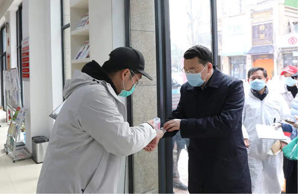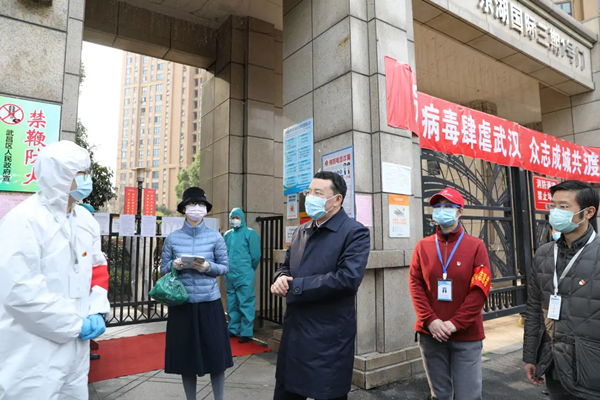 2月24日,省委常委、省委统战部部长尔肯江·吐拉洪深入武汉市武昌区水果湖街武重社区,了解省委统战部对口下沉社区疫情防控工作,慰问社区工作人员、志愿者和下沉社区防疫一线的党员干部,送去一批防护物资和生活用品。