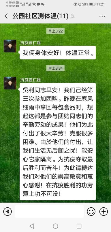 下沉公园社区的党员坚持每天通过打电话、发微信等方式询问辖区居民体温情况,帮助办理电卡、天然气卡充值等手续,给行动不便、年龄较大、不会网购的居民提供跑腿、采购、送货上门等服务。考虑到一些慢性病患者可能存在断药问题,对辖区居民用药需求分批登记,动用校医疗门诊部储备加强供应,目前已为104名老同志开具药品并送药上门。图书馆阙宁南同志在听说一名居住党校宿舍的老同志降压药吃完了又不能外出购买的情况后,立即将自己家的降压药送过去,这名老同志备受感动,动情地说:“在这个特殊时期,你们不顾个人安危,为我们排忧解难,一次次把温暖送给各家各户,必须为你们点赞!”