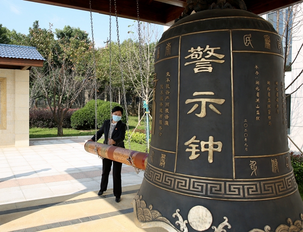 跟随着讲解员的解说,“赶考”之路、重大战略抉择、伟大历史实践、廉政之规等内容呈现在大家面前,当进入“覆车之鉴”的展厅时,展板的颜色变得深沉,违纪违法党员干部的典型案例、落马官员的沉痛忏悔、腐败问题根源的深刻剖析……一面面展板就像一面面镜子,一个个活生生的腐败案例就是鲜活的教材、长鸣的警钟。大家边听边看,尤其是看到曾经熟悉的人,大家受到的震撼更强烈,感触更深刻。在郭俊苹同志用力敲响的廉政警钟中,警示教育活动结束了。长鸣的钟声回荡在警示教育基地的上空,也激荡在党员干部的耳边、心间。