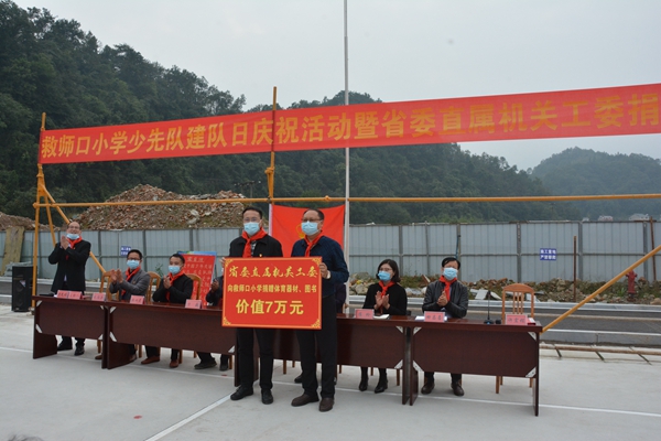 13日下午,工委党员干部及驻村工作队队员、村两委干部参加救师口小学建队纪念日庆祝活动暨省委直属机关工委捐赠仪式。捐赠仪式上,刘晓刚代表省委直属机关工委为救师口小学捐赠价值7万元的文体器材和书籍,并对学生及教职工致以少先队日的亲切问候,勉励他们刻苦学习,建设美好家园。随后,大家来到村帮扶产业园,实地调研了解项目建设进展情况,并在产业园开展了除草,药材栽种等劳动。晚上,工委党员代表到结对留守儿童家中,为他们送去了工委“爱心妈妈”的礼物,了解孩子们在校学习和生活情况。