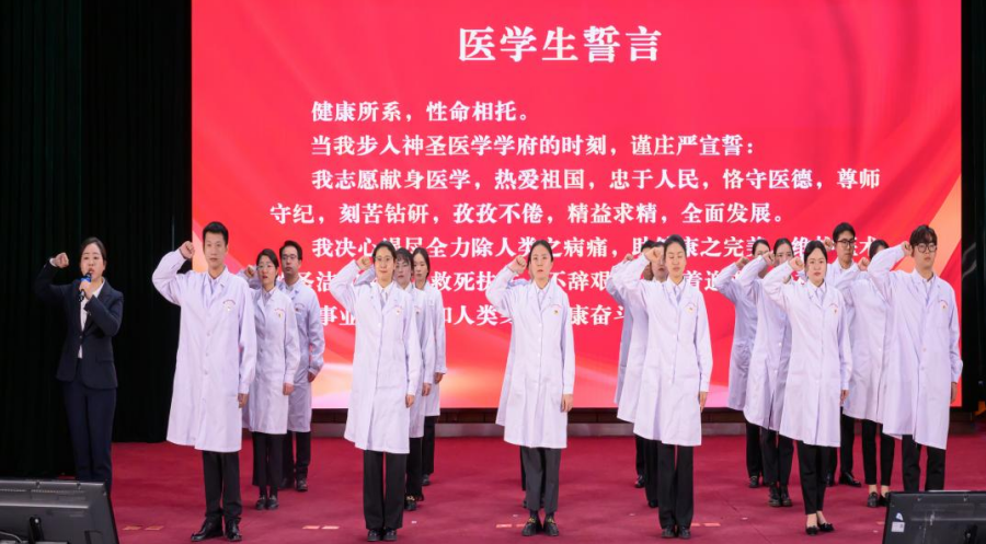 “我志愿献身医学,热爱祖国,忠于人民……我决心竭尽全力除人类之病痛,助健康之完美……”活动中,一场庄重的重温医学生誓言仪式将现场氛围推向高潮。誓言中饱含责任与担当,深深触动了在场的每一位青年。
