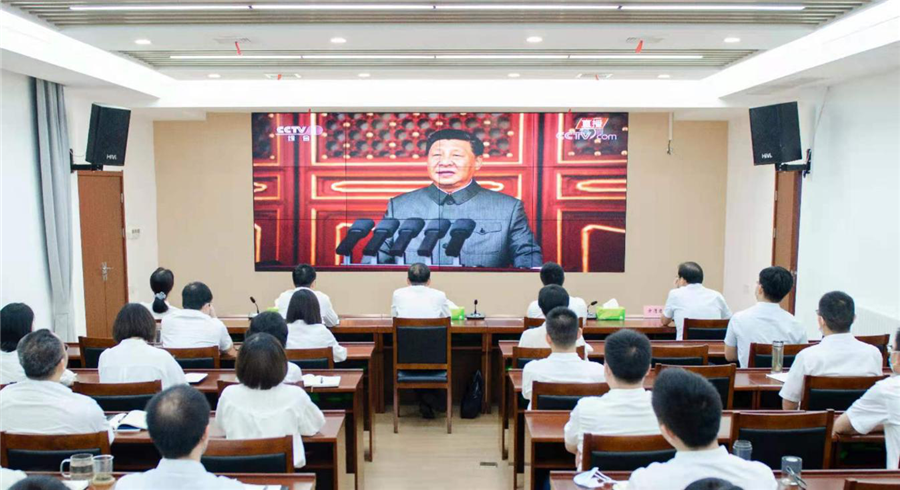 7月1日上午,庆祝中国共产党成立100周年大会在北京天安门广场隆重举行。中共中央总书记、国家主席、中央军委主席习近平发表重要讲话。团省委领导班子全体成员、直属机关党员干部着装整齐、精神饱满,集中收听收看大会盛况直播。