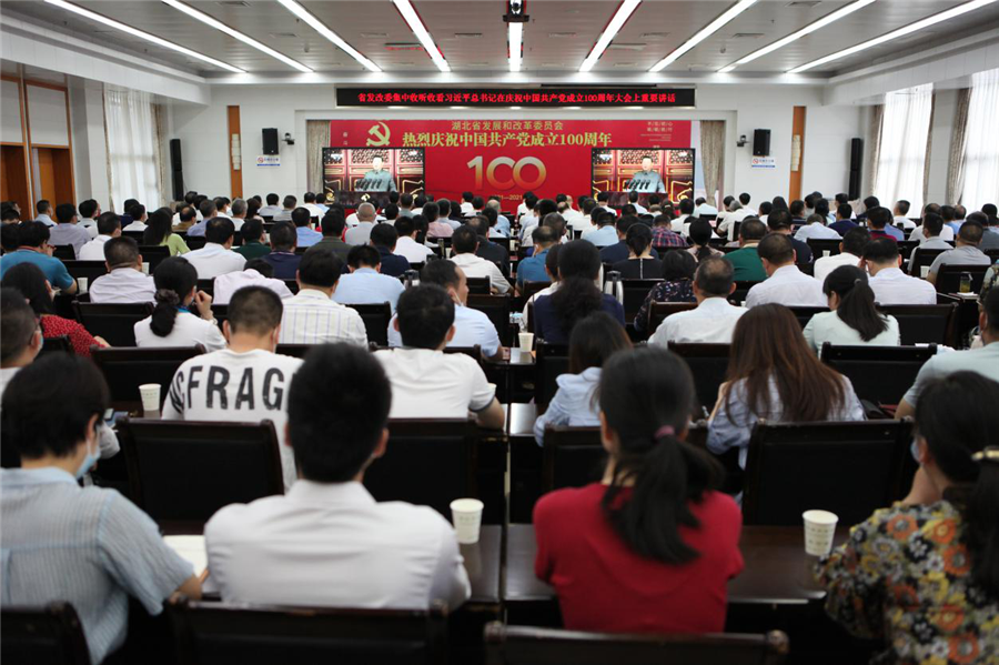 7月1日上午8时,庆祝中国共产党成立100周年大会在北京天安门广场隆重举行,中共中央总书记、国家主席、中央军委主席习近平发表重要讲话。省发改委组织全体党员干部集中收听收看中国共产党成立100周年庆祝大会直播。