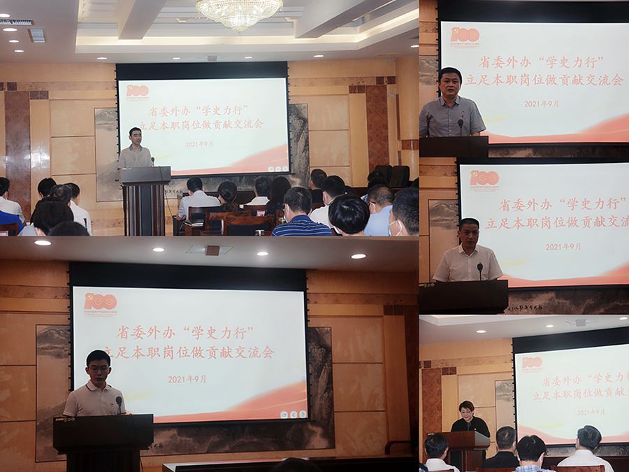9月3日,省委外办结合第二十二个党风廉政建设宣传教育月活动,围绕创新开展"清廉有为"作风提升活动,举办"学史力行"立足岗位做贡献工作交流会,来自机关5个支部的代表分别从脱贫攻坚、下沉社区参与疫情防控、党建引领基层社会治理等方面,分享感人事迹,交流心得体会,用榜样的力量激励党员干部不忘初心使命、勇于担当作为,在全办营造学习先进、争当先进的浓厚氛围。
