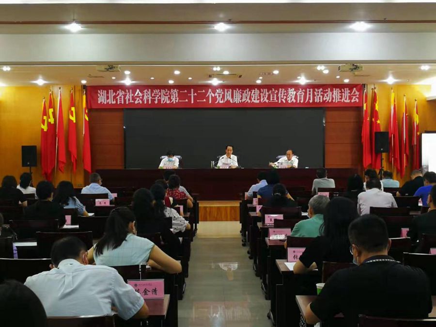 2021年9月9日,湖北省社会科学院举办了第二十二个党风廉政建设宣传教育月活动推进会,党组副书记、院长刘光远为党员干部讲廉政党课。院党组班子成员,副处副研以上党员、纪检委员、离退休党支部书记及研究生党员代表参加会议。