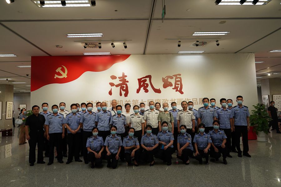 此次书画展以"创清廉湖北,树新风正气"为主题,共精选了251幅优秀廉政自创作品集中展示,省公安厅有3幅作品入展。参展作品主题鲜明,立意新颖,构思巧妙,格调高雅,以书法、绘画等形式,把理想信念、从政道德、家风家训等廉政文化教育内容,形象生动地传递给广大党员干部群众,充分诠释了共产党员清廉守正的政治品格,爱党爱国的坚定信念,在翰墨飘香的展厅,一书一画,清雅之风;一琴一鹤,水云之度。全体党员民警沉浸于清廉守正绘画作品中陶冶于警言佳句书法艺术之间。