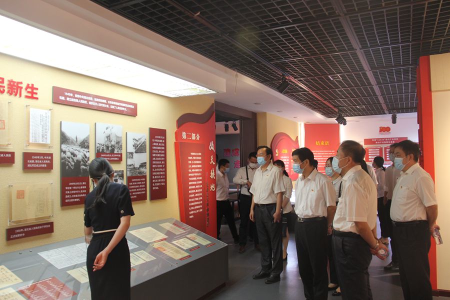 在湖北省档案馆工作人员的讲解下,大家依次参观了"亲切关怀""开天辟地""改天换地""翻天覆地""惊天动地"五个部分的展览,回顾了100年来中国共产党在湖北波澜壮阔的光辉历程。观看500多件珍贵红色档案文献和影像资料,大家系统地了解到:在中国共产党的领导下,荆楚大地,英雄辈出。湖北人民在不同历史时期始终忠诚于党的领导,听从党的召唤,取得了一系列的巨大成就。大家表示,有幸成为驻扎在荆楚这片英雄土地的地质工作者,要不忘初心使命,传承红色基因,为支撑国家能源资源安全、支撑服务地方防灾减灾、生态文明建设、美丽湖北建设等做出应有的贡献。