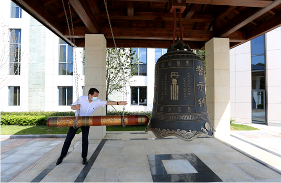 在基地廉政文化广场,大家面向警示钟庄严肃立。厅党组书记、厅长柳望春庄重地敲响了廉政警钟,长鸣的钟声激荡在党员干部的心间,警示着大家要牢记初心使命,时刻保持自警自重自省,始终做到清醒清正清白。