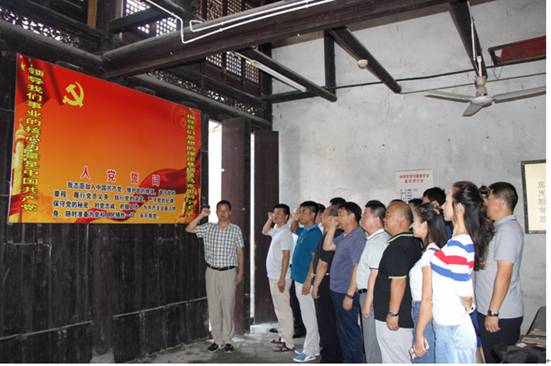 瞿家湾,革命的火种曾在这里保存和燃烧,周逸群、贺龙、段德昌等老一辈革命先烈曾在这里浴血战斗,昔日湘鄂西革命根据地的首府就坐落在这饱经沧桑的老街上。走进瞿家湾,支部党员们认真听取解说员介绍英雄们的感人事迹,参观了中共中央湘鄂西分局、中共湘鄂西特委、湘鄂西省苏维埃政府、湘鄂西苏维埃联县政府、洪湖独立团(新六军)旧址等。那一个个闪光的名字、一张张珍贵的照片、一份份感人的史料、一首首壮烈的题诗、一件件劳作的器具、一堵堵风霜的墙壁,都记载了斗争的腥风血雨,印证了革命的如火如荼,让大家真切的体会到当年艰苦卓绝的斗争环境及革命先烈不屈不饶的革命精神。随后,支部党员们面对党旗,重温入党誓词,再一次庄重而深刻地表达了对党忠诚,为党的事业奋斗终身的决心和愿望。