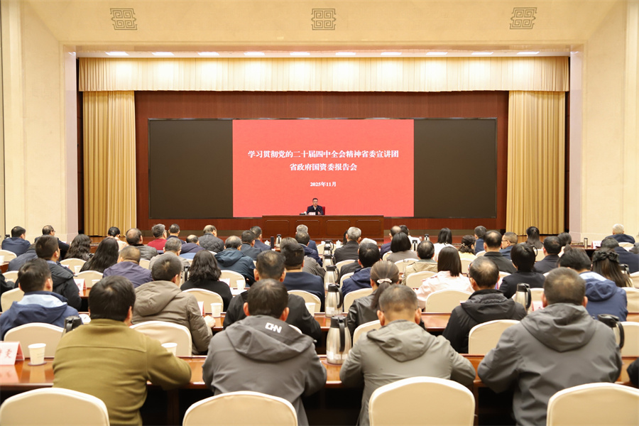 11月19日,学习贯彻党的二十届四中全会精神省委宣讲团省国资委报告会举行。省委宣讲团成员、省国资委党委书记、主任陈忠以《凝心聚力贯彻四中全会精神 以国资国企高质量发展助推中国式现代化湖北实践》作专题宣讲报告。委党委委员、副主任胡铁军主持报告会,党委班子成员及二级巡视员参加报告会。