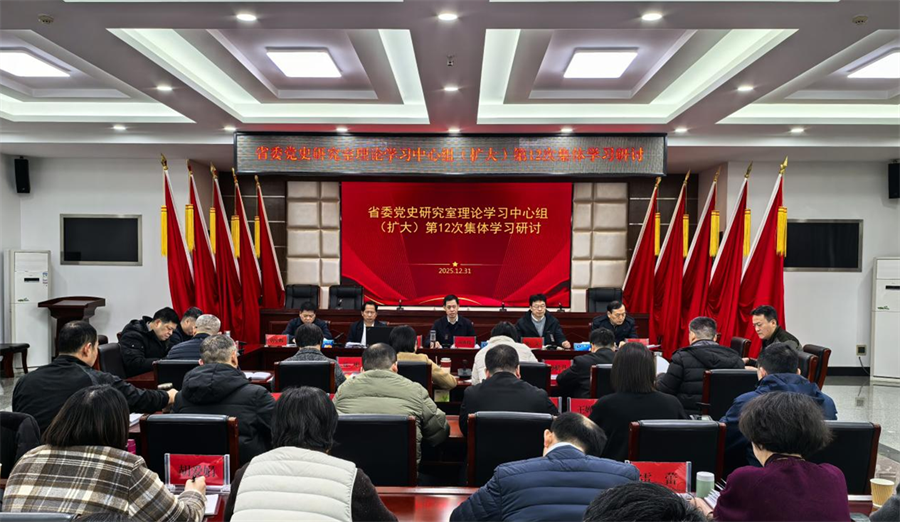 2025年12月31日,省委党史研究室理论学习中心组围绕“学深悟透党的二十届四中全会精神,坚定信心、加力奋进,确保‘十五五’开好局起好步,以高质量党史赋能支点建设见行见效”主题,组织专题学习研讨。室主任项水伦主持会议,室领导班子成员、二级巡视员及全室党员干部职工参加学习。