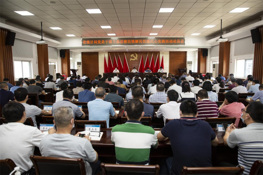 5月31日下午,省统计局召开党员干部下基层察民情解民忧暖民心实践活动动员会。局党组书记、局长、党史学习教育领导小组组长朱慧作动员讲话,局党组成员、副局长蔡受清作方案说明,局党组成员、调查监测中心党委书记、主任、机关党委书记汪军主持会议。