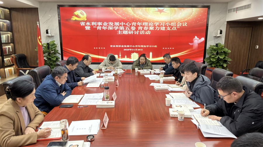 11月20日下午,湖北省水利事业发展中心青年理论学习小组开展“青年深学第五卷 青春聚力建支点”主题研讨活动。党委书记、主任姜俊涛同志,党委委员、纪委书记刘作银同志到场指导,与青年干部共话成长。