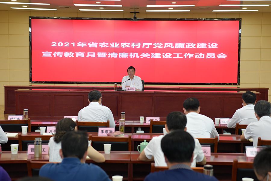9月2日下午,省农业农村厅召开2021年党风廉政建设宣传教育月暨清廉机关建设工作动员会。省委农办主任、省农业农村厅党组书记、厅长、省乡村振兴局党组书记吴祖云同志作动员讲话。厅领导、厅机关全体干部、厅直单位主要负责人200余人参加了会议。
