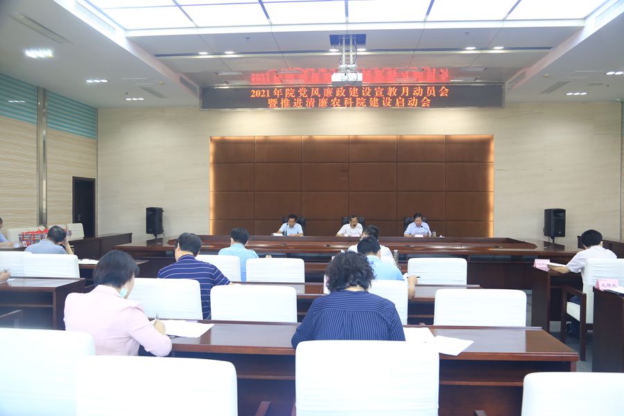 会上,刘杰对2021年党风廉政建设宣教月活动和推进清廉农科院建设作出安排部署,要求按照"集中学习、清廉建设、警示教育、作风提升、护航发展"5项重点内容开展宣教月活动;按照"政治生态好、用人导向正、干部作风实、创新环境优"4大任务推进清廉农科院建设。刘晓洪就开展好宣教月活动和推进清廉农科院建设作动员讲话,他强调,各单位要提高站位、充分认识活动的重要意义,聚焦主题、切实增强活动的时效性,以案肃纪、用身边的案例加强警示教育。要紧扣"好正实优"目标,扎实开展宣教月活动和推进清廉农科院建设见成效,全院各级领导干部从自身做起主动加强和接受监督,着力营造风清气正的政治生态和优良的科技创新环境,切实为全省农业高质量发展贡献农科力量。
