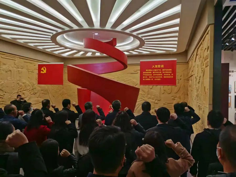 “我志愿加入中国共产党,拥护党的纲领,遵守党的章程……”活动开始,在党性教育实训室序厅,全体党员面向鲜红的党旗,举起右手握拳,重温入党誓词。随后,中共党史党建教研部李敏杰副教授从“经典论述”、“党性楷模”、“反面镜鉴”、“正心修身”四个部分,为大家讲授了一堂生动的党性教育课。
