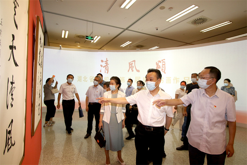 2022年8月11日,省委党史研究室组织全室党员干部职工到湖北省图书馆参观省直机关第八届“清风颂”廉政书画作品展和省妇联“家和万事兴”家教家风主题展,接受廉政教育。室主任何光耀及班子成员、厅级干部一同参加活动。