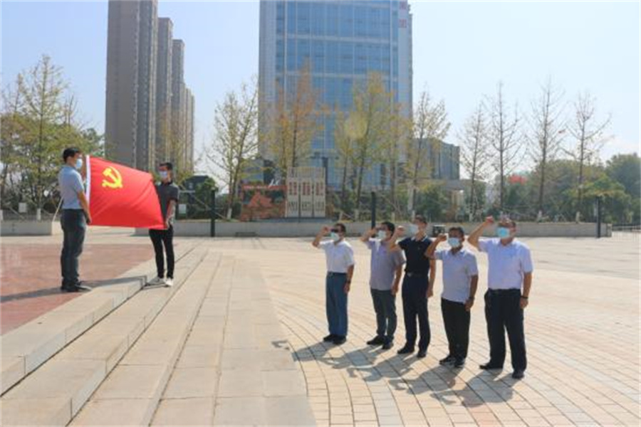 政法局二支部党员在九江98抗洪纪念碑广场重温入党誓词