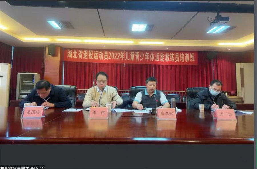 开办湖北省退役运动员2022年儿童青少年体适能教练线上培训班,国家体育总局科学研究所副所长杨杰,湖北体育局党组成员、副局长郑李辉出席开班仪式并讲话。