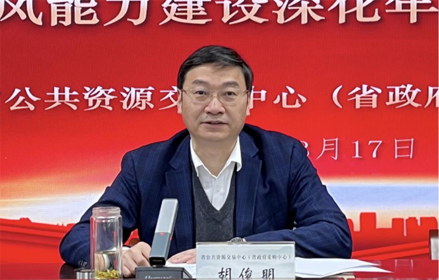 胡俊明要求,2023年,党风廉政建设工作要坚持以习近平新时代中国特色社会主义思想为指导,全面学习贯彻党的二十大精神,认真贯彻落实二十届中央纪委二次全会和省第十二次党代会、省纪委十二届二次全会部署,一刻不停全面从严,持之以恒正风提能,为交易采购事业高质量发展提供坚强保障。一是以“两个永远在路上”的执着,切实推进党风廉政建设。要坚持运用“全周期管理”理念,强化政治建设,提升政治能力;强化廉政教育,筑牢拒腐防线;强化责任担当,形成工作合力,推动惩治威慑、制度约束、提高觉悟一体发力,打好高压震慑、建章立制、教育转化“组合拳”,达到全方位、立体化、综合性治理效果。二是以“作风能力建设深化年”为载体,踏实抓好干部队伍建设。要提高站位,强化认识,高点谋划作风能力建设深化年活动;要聚焦短板,创新机制,高位推动作风能力建设走深走实;要精心组织,统筹推进,高标落实作风能力建设深化年活动要求。三是以“量的快速增长和质的显著提升”为目标,扎实促进公共资源交易和政府采购事业高质量发展。要在“稳增长”扩大交易采购规模上求突破,在“优环境”提升市场主体获得感上下功夫,在“提质效”打造一流交易(采购)中心上有新进展,为更好服务我省加快建设全国构建新发展格局先行区作出应有贡献。