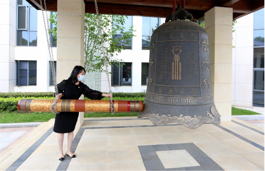参观结束后,大家来到警示教育广场,面向警示钟庄严肃立。事业单位机构编制处副处长、机关纪委委员郑江红作为代表敲响了廉洁警示钟,三声警钟入耳入脑更入心,提醒在场年轻干部要时刻保持自警自重自省。随后,全体人员矗立在警钟下,围绕廉政主题并结合岗位实际,畅谈认识和体会。