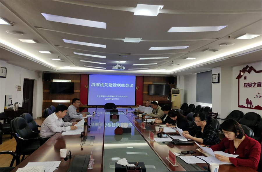5月11日,黄石市委直属机关工委召开清廉机关建设联席会议,市纪委监委机关、市委办公室、市人大常委会办公室、市政府办公室、市政协办公室、市审计局等6家责任单位相关领导参会,市纪委监委派出市委直属机关纪检监察工委列席。