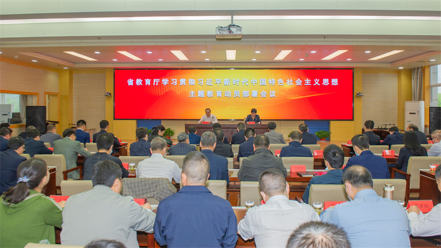 4月14日,省教育厅召开学习贯彻习近平新时代中国特色社会主义思想主题教育动员部署会议,深入学习贯彻习近平总书记在中央主题教育工作会议上的重要讲话精神,深入学习全省主题教育工作会议精神,对厅直系统开展主题教育进行动员部署。省教育厅党组书记、厅长周静主持会议并作动员讲话,省委第五巡回指导组组长黄明到会指导并讲话。