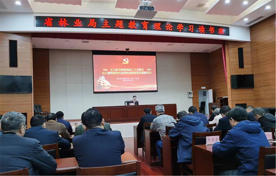 按照中央和省委关于主题教育的统一部署,从4月23日开始,省林业局集中一周时间举办“学习贯彻习近平新时代中国特色社会主义思想主题教育理论学习班”。23日上午,局党组书记、局长王昌友围绕“学习贯彻习近平新时代中国特色社会主义思想和党的二十大精神”作开班式专题辅导,局领导、局机关全体党员干部、局直单位副处以上干部参加学习。