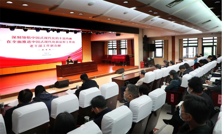 马在学以《深刻领悟中国式现代化的丰富内涵 在全面推进中国式现代化新征程上作出老干部工作新贡献》为题,从世界现代化的起源及不同模式、近代中国现代化事业的开启及探索、中国共产党领导中国人民探索现代化的历程及伟大成就、中国式现代化理论的丰富内涵、新时代老干部工作为全面推进中国式现代化贡献独特力量等五个方面进行深入阐释、系统讲解。同时结合老干部工作实际,找准老干部工作融入中国式现代化的切入点、着力点和结合点,对做好新时代老干部工作提出了明确要求。