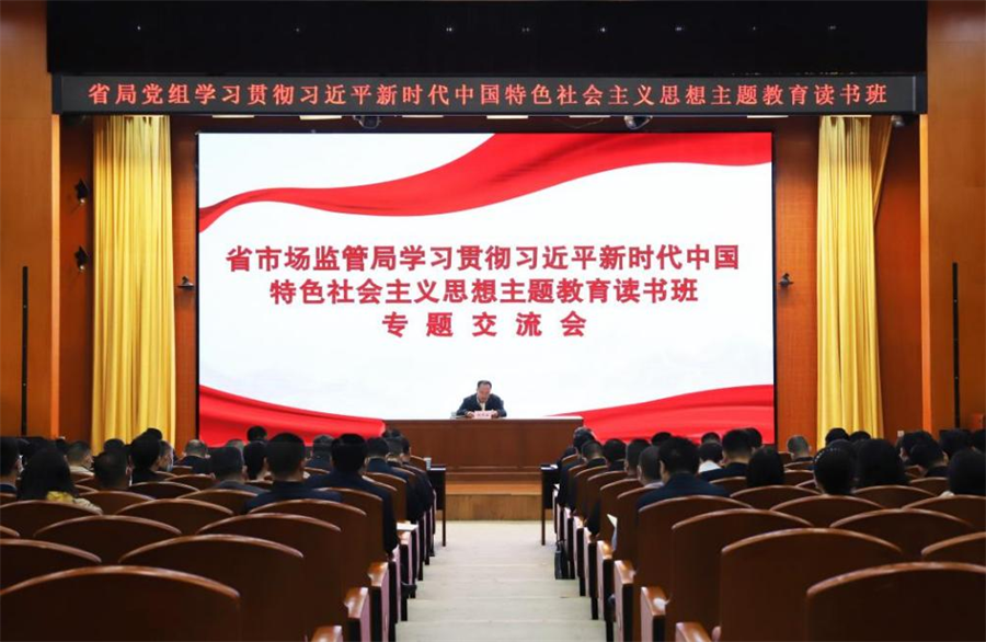 近日,省市场监管局党组学习贯彻习近平新时代中国特色社会主义思想主题教育读书班举行专题交流。省局机关全体党员、干部,直属事业单位党组织书记(负责人)参加。省局党组书记、局长、局主题教育领导小组组长刘荣山结合学习体会和调查研究,以“汲取思想伟力 凝聚奋进力量”为题作专题交流,强调要牢牢把握“学思想、强党性、重实践、建新功”的总要求,坚持认识与实践相结合、理论与实际相联系、改造主观世界与改造客观世界相统一,在深学细研中汲取思想伟力,不断提高履职尽责的能力和水平,在学以致用中凝聚奋进力量,努力书写中国式现代化市场监管湖北篇章。