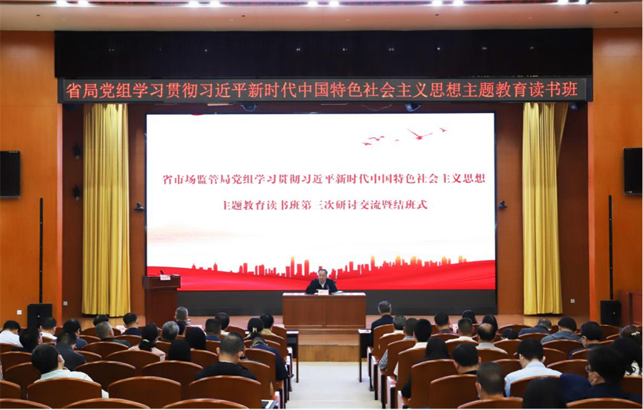 5月9日上午,省市场监管局党组学习贯彻习近平新时代中国特色社会主义思想主题教育读书班举行第三次研讨交流暨结班式,为期7天的读书班正式结班。省局党组书记、局长刘荣山主持并讲话。机关全体党员、干部,直属事业单位党组织书记、负责人参加结班式。