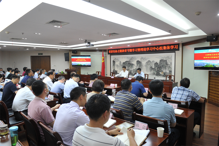 6月9日,省委台办开展主题教育专题学习暨理论学习中心组集体学习,邀请省经济和信息化厅党组书记、厅长刘海军进行专题授课。办主任程良胜主持学习并讲话,办领导班子成员、全办党员干部参加学习。