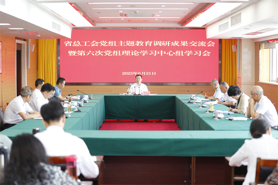 6月21日,省总工会党组召开学习贯彻习近平新时代中国特色社会主义思想主题教育调查研究成果交流会,深入学习贯彻习近平总书记关于调查研究工作的重要论述,认真落实省委有关要求,全面回顾总结前期调查研究情况,安排部署下阶段工作。省委主题教育第二巡回指导组到会指导,省总工会党组书记、常务副主席陈惠霞主持会议。