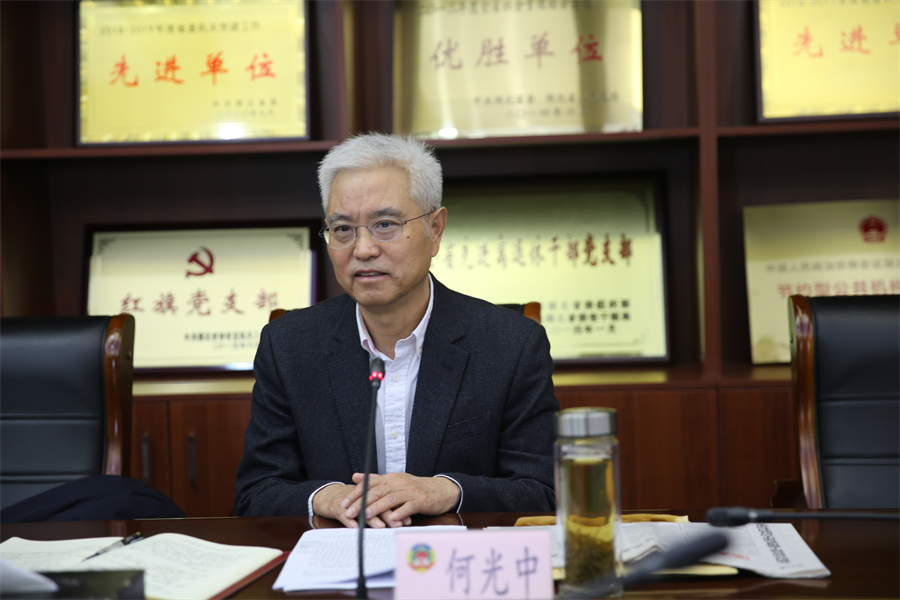 何光中同志指出,要充分认识党的十九届六中全会的重大意义。党的十九届六中全会是在党成立100周年之际,党领导人民实现第一个百年奋斗目标、向着实现第二个百年奋斗目标迈进,为实现中华民族伟大复兴的中国梦而不懈奋斗的重大历史关头召开的一次十分重要的会议。全会审议通过的《中共中央关于党的百年奋斗重大成就和历史经验的决议》是我们党通过的第三个历史决议,与党的前两个历史决议既一脉相承又与时俱进,对进一步统一全党思想和行动,团结带领全国各族人民夺取新时代中国特色社会主义伟大胜利,具有重大现实意义和深远历史意义。