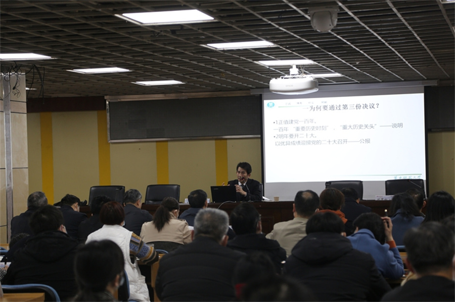 谢从高教授以《总结历史、把握规律、坚定信心、走向未来:学习贯彻十九届六中全会精神》为题,从党的十九届六中全会"为何要通过第三份《决议》、《决议》的特点、《决议》的基本框架、新时代的总结和若干重要论断"等五个方面系统解读了党的十九届六中全会精神。大家纷纷表示,谢从高教授的宣讲既有的权威的理论概括,又有大量的史实资料,报告内容丰富,脉络清晰,重点突出;既有历史的宽广视野,也有现实的深刻思考,对推进省档案馆学习贯彻党的十九届六中全会精神走深走实,具有重要的指导意义。