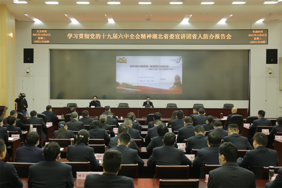 12月7日,湖北省人民防空办公室举办学习贯彻党的十九届六中全会精神宣讲报告会,省委宣讲团成员、湖北大学马克思主义学院院长、教授、博士生导师熊友华作宣讲报告,办党组书记、主任许晓金主持报告会。省党史学习教育巡回指导第五组组长曾成贵到会指导。