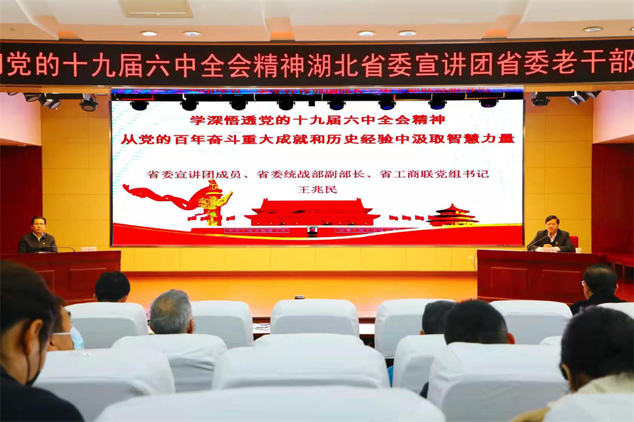 王兆民以《学深悟透党的十九届六中全会精神 从党的百年奋斗重大成就和历史经验中汲取智慧力量》为题,从深刻认识总结党的百年奋斗重大成就和历史经验的重大意义、深刻领会党的十九届六中全会作出的重大政治论断、深刻领会十九届六中全会的核心要义、推动十九届六中全会精神在湖北落地生根等四个方面,对全会精神作了系统宣讲和深入阐释。宣讲报告聚焦主题,讲出了全会精神的整体把握和核心要义,讲出了坚持“两个确立”、做到“两个维护”的高度政治自觉和情感自觉,讲出了贯彻全会精神的使命担当,对局系统学习贯彻全会精神具有重要指导意义。