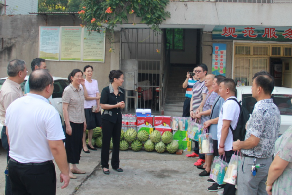 8月9日,省直机关工委副书记周正素一行来到省供销社下属湖北银丰置业服务有限责任公司,慰问在高温下坚守岗位的基层职工,为他们送去夏日清凉和关怀问候。省供销社机关党委书记、一级巡视员张岚陪同慰问。