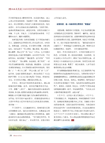 在社区,我们及时协助发热重症病人,耐心细 18 次到社区看望慰问工作组,每次到社区他都要走访零