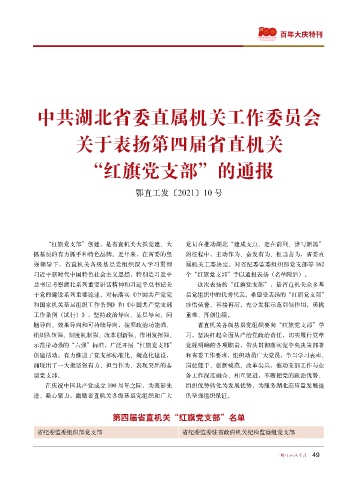 在庆祝中国共产党成立 100 周年之际,为表彰先 组织优势转化为发展优势,为服务湖北高质量发展提