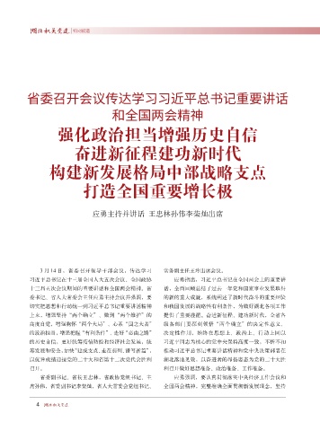 3 月 14 日,省委召开领导干部会议,传达学习 常务副主任王玲出席会议。