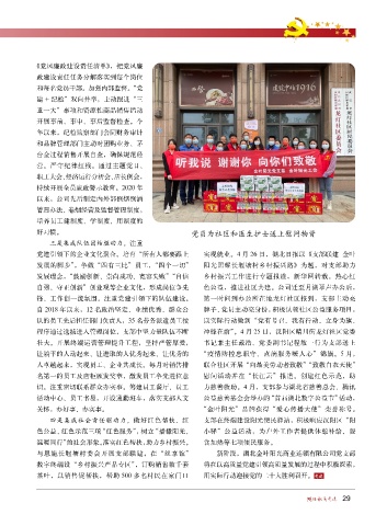识。注重密切联系群众办实事。筹建员工餐厅、员工 力慈善救助。4 月,支部参与湖北省慈善总会、腾讯