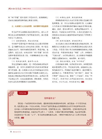 中国共产党领导是中国特色社会主义最本质的特 充分发挥人大机关密切联系群众的政治优势,积