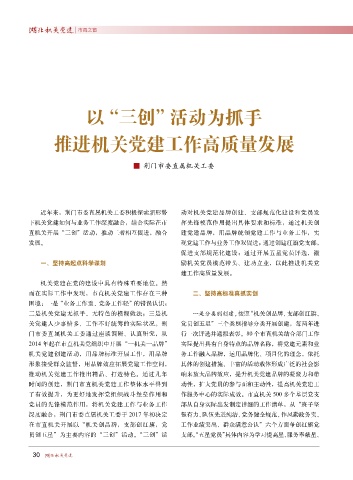 二是机关党建无抓手、无特色的模糊做法;三是机 一是分类别创建。 按照“机关创品牌、支部创红旗、