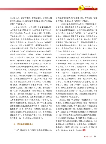 创”活动先进做法进行宣传,近三年共计报道 50 余 和组织力;在活动组织上,坚持“戴党员徽章、亮党