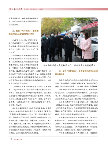 刻揭示了药品监管的基本规律和总体要求,确立了药 管主责主业,巩固深化药品监管体制改革,以健全完善