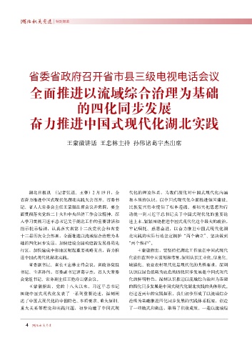 王蒙徽指出,党的十八大以来,习近平总书记 的四化同步发展是中国式现代化湖北实践的具体形式。